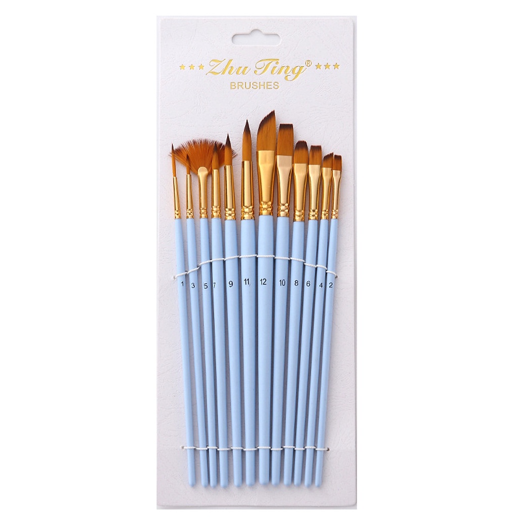 12 Cọ vẽ màu nước Pastel 3 Mint Pink Blue màu sơn dầu tranh tường số hoá - B52