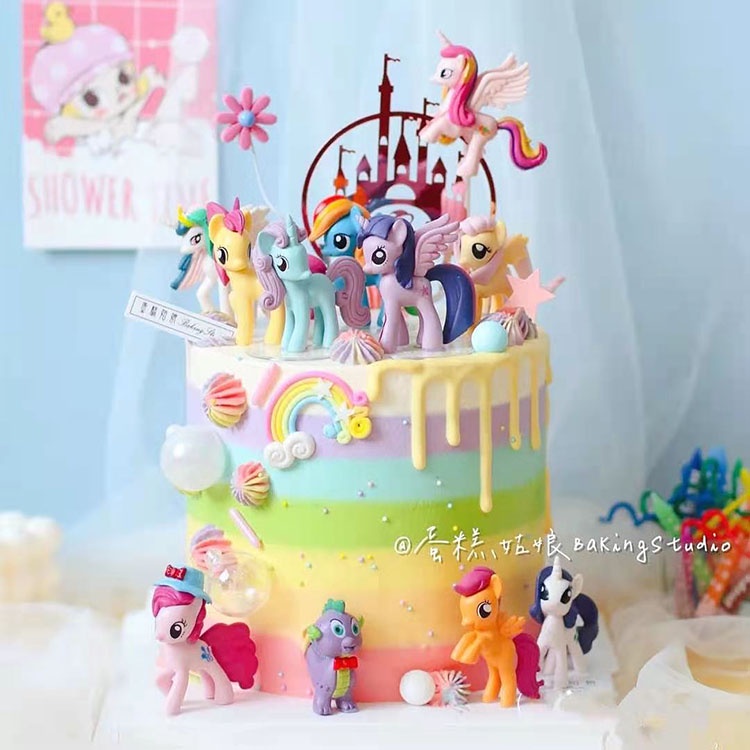 12Pcs Cake Topper Cake Decoration Toys Cartoon My Little Pony Cake Figurines Birthday Party Decoration Unicorn Doll Toy