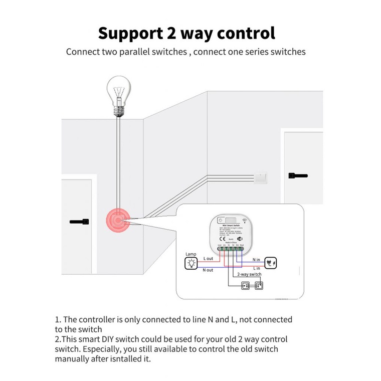 Gói hàng bao gồm: Bộ ngắt * 1 Thông tin chi tiết: Đó là một công tắc thông minh wifi, giá cả phải chăng và dễ cài đặt. Nó là một rơ le đa năng có thể được kết nối với các thiết bị điện khác nhau. Nó có hệ thống dây điện tối thiểu và một vỏ chống cháy có thể tháo rời có thể bảo vệ dây tốt hơn và ngăn dây đồng xâm nhập vào bên ngoài và gây ra điện giật. Ứng dụng: cuộc sống ấm cúng (hỗ trợ bộ nhớ nhà) Mạng không dây: IEEE 802.11 b / g / n Điện áp làm việc: 100-240V 50 / 60Hz Tần số vô tuyến: 433MHz Dòng điện tối đa: 16A Điều khiển hai chiều: hỗ trợ Kích thước: 49 * 48 * 23mm Mô tả: 1.Dễ dàng để cài đặt Có thể được đặt phía sau công tắc Cũng hoạt động với một công tắc bên ngoài Công tắc MINI có thể được cài đặt bên trong công tắc để bật / tắt Các thiết bị của bạn được kết nối với công tắc 2.Bốn chức năng điều khiển Thêm chức năng điều khiển wifi 1) RF 433MHz 2) Điều khiển AP 3) Kiểm soát âm thanh 4) Phím ON / OFF 3.Điều khiển từ xa Bạn có thể điều khiển các thiết bị thông minh đã được kết nối Cho ứng dụng từ mọi nơi bất cứ lúc nào. 4.Điều khiển bằng giọng nói với Siri Nó hoạt động với Apple HomeKit, Vì vậy, bạn có thể dễ dàng kiểm soát Kết nối Bộ điều khiển bằng cách sử dụng Siri trên iPhone, iPad của bạn, Ipod touch hoặc Apple Watch. Không yêu cầu cài đặt APP khác. 5.Điều khiển bằng giọng nói Đơn giản chỉ cần đưa một lệnh bằng giọng nói đến Alexa hoặc Google Home để bật / tắt công tắc khi bàn tay của bạn đầy đủ và tận hưởng sự thoải mái khi thoại. 6.3 loại khởi động lại trạng thái 1) Bật đèn, bật đèn, Và hoạt động trước bộ nhớ 2) Không cần phải lo lắng về tình trạng Của đèn khi đi ra ngoài 7.Chức năng chia sẻ Tài khoản chính có sự cho phép độc quyền, một cú nhấp chuột để chia sẻ sự cho phép với cả gia đình. Hãy để gia đình tận hưởng niềm vui của cuộc sống thông minh! 8.Làm cho thiết bị thông minh hơn Dòng điện được hỗ trợ tối đa là 16 A, nó có thể được kết nối với hầu hết các thiết bị điện và ánh sáng 9.Hỗ trợ điều khiển 2 chiều Kết nối hai công tắc song song, kết nối một bộ chuyển mạch 1. Bộ điều khiển chỉ được kết nối với dòng N và L, không được kết nối Sang công tắc 2.Công tắc DIY thông minh này có thể được sử dụng để điều khiển 2 chiều cũ của bạn Chuyển đổi. Đặc biệt, bạn vẫn có sẵn để điều khiển công tắc cũ Thủ công sau khi được thông báo nó.