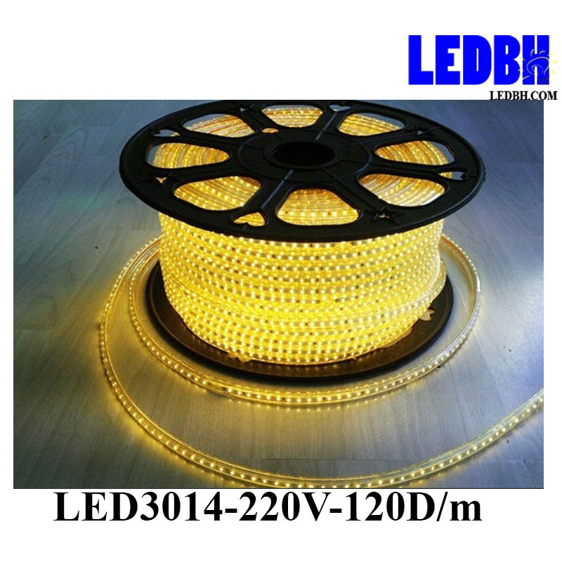 1m Đèn led dây 3014 Vàng nắng 220V cuộn 100m loại có 120 mắt led màu – Home-3014-120D/M-WW