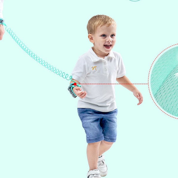 - Dây dắt trẻ em khi đi dạo ngoài trời, giúp bố mẹ an tâm hơn không sợ bị lạc bé. - Khóa bấm có thể khóa lại để bé không thể tự mở ra. Mở khóa bằng chìa tích hợp trên vòng tay của người mẹ. - Dây sơn phản quan, an toàn khi đi ban đêm. - Quấn cổ tay lót mút dày