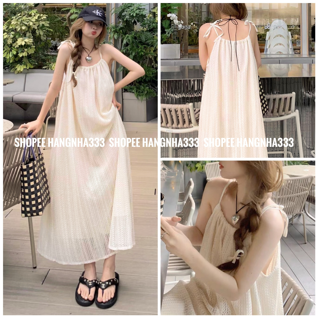 2 LỚP | Váy 2 dây cột dáng dài chất ren lưới mềm vintage đi biển siêu xinh