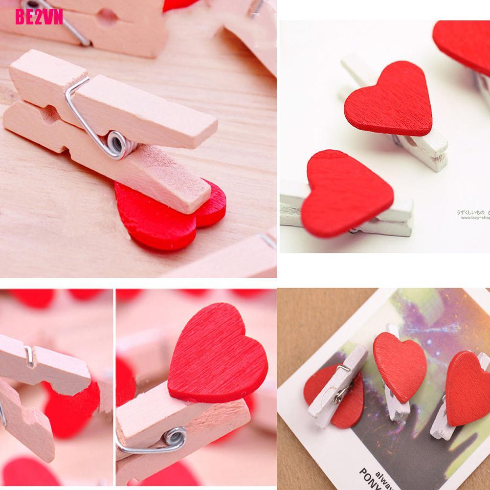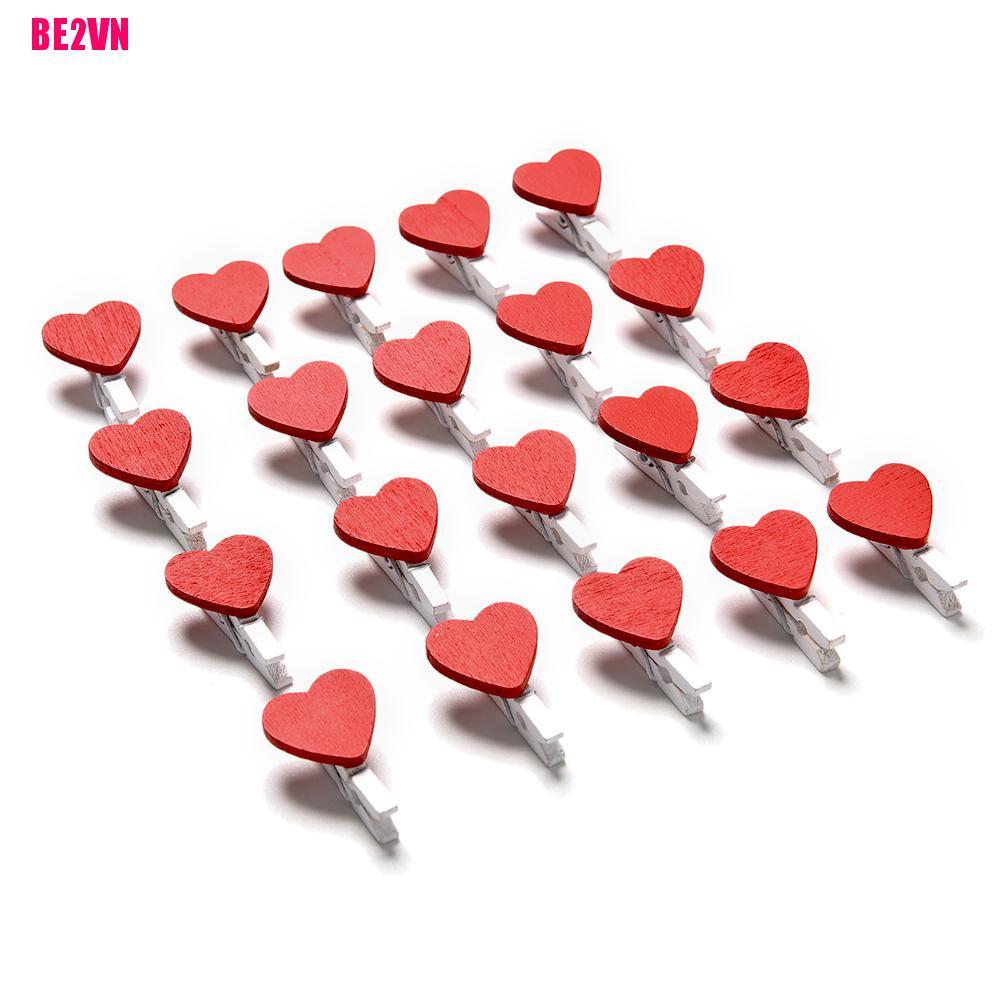 20 Pcs Stylish Wooden Red Love Heart Pegs Photo Paper Clips Wedding Decor Craft
