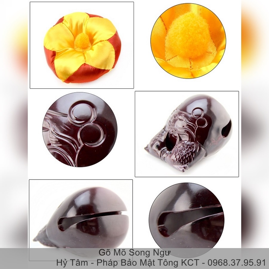 |Tặng đệm lót| Mõ Song Ngư 3 Kích Thước Mõ có hình bầu dục, đầu hơi tròn, khắc song ngư: Loại này thường được dùng trong các thời khóa lễ sớm tối có đông người tụng niệm với mục đích là để cho mọi người tụng nhịp nhàng theo trường canh của tiếng mõ. Người đánh mõ gọ