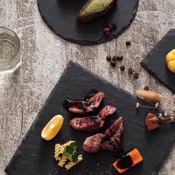 30-40CM THỚT ĐÁ ĐEN TỰ NHIÊN hình vuông/ tròn/ chữ nhật decor food. khay đá nướng phụ kiện trang trí chụp ảnh