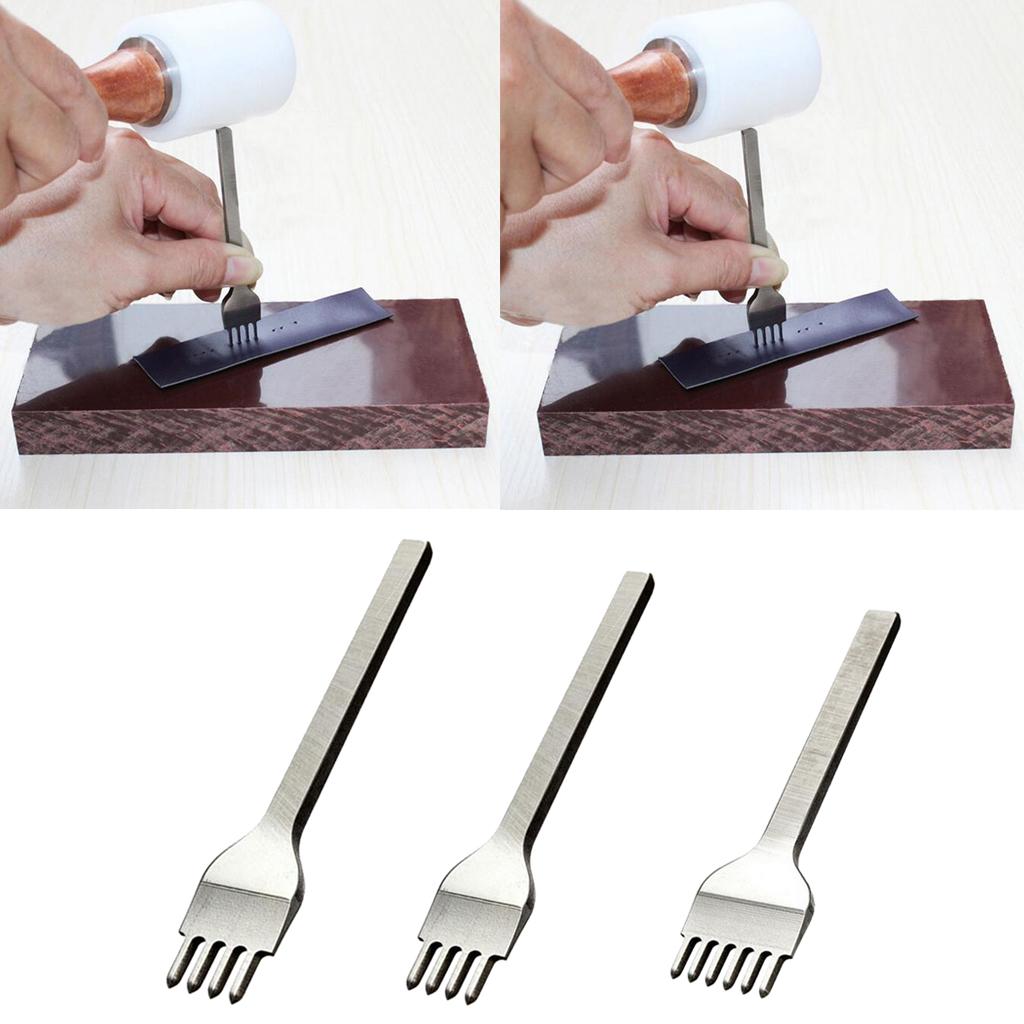 3Pcs Leather Craft Tools Diamond Hole Punch Stitching Silver