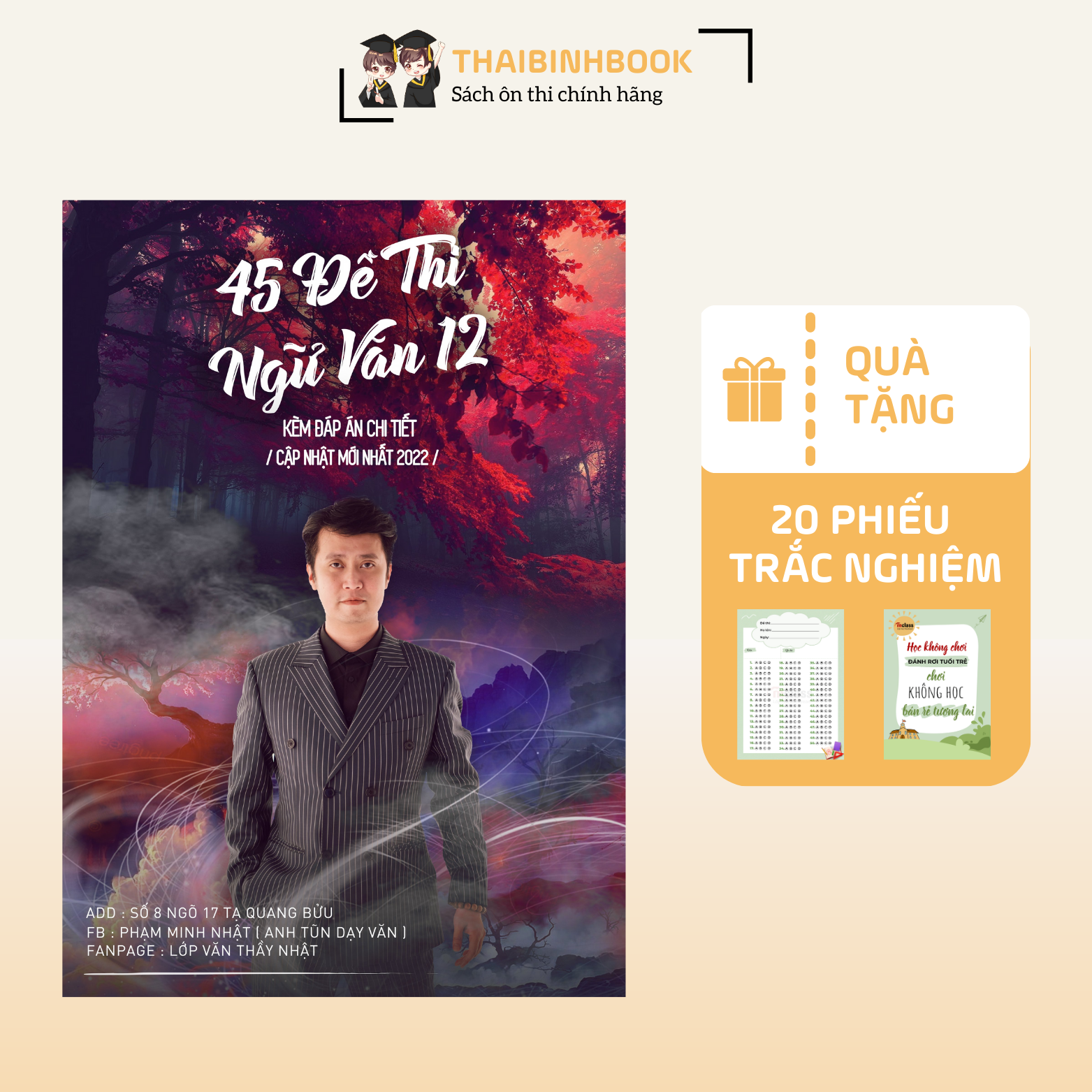 Cuốn sách có tổng cộng 45 đề thi THPTQG môn Ngữ Văn được thầy Phạm Minh Nhật chắp bút dựa trên cấu trúc đề thi cũng như ma trận của Bộ Giáo dục Đào tạo. Sách có đáp án và dàn ý chi tiết để em có thể tự chấm cho mình. Các đề viết văn bao gồm nghị luận xã hội và nghị luận văn học sẽ chữa dàn ý cụ thể, giúp học sinh định hướng được nội dung cần viết. Nhuần nhuyễn 45 đề này nghĩa là các em đã nắm trong tay kiến thức cùng những đề điển hình, có khả năng thi vào cao. Chỉ là em có chịu đọc, học và ngấm hay không thôi.Giá sản phẩm trên Tiki đã bao gồm thuế theo luật hiện hành. Bên cạnh đó, tuỳ vào loại sản phẩm, hình thức và địa chỉ giao hàng mà có thể phát sinh thêm chi phí khác như phí vận chuyển, phụ phí hàng cồng kềnh, thuế nhập khẩu (đối với đơn hàng giao từ nước ngoài có giá trị trên 1 triệu đồng).....