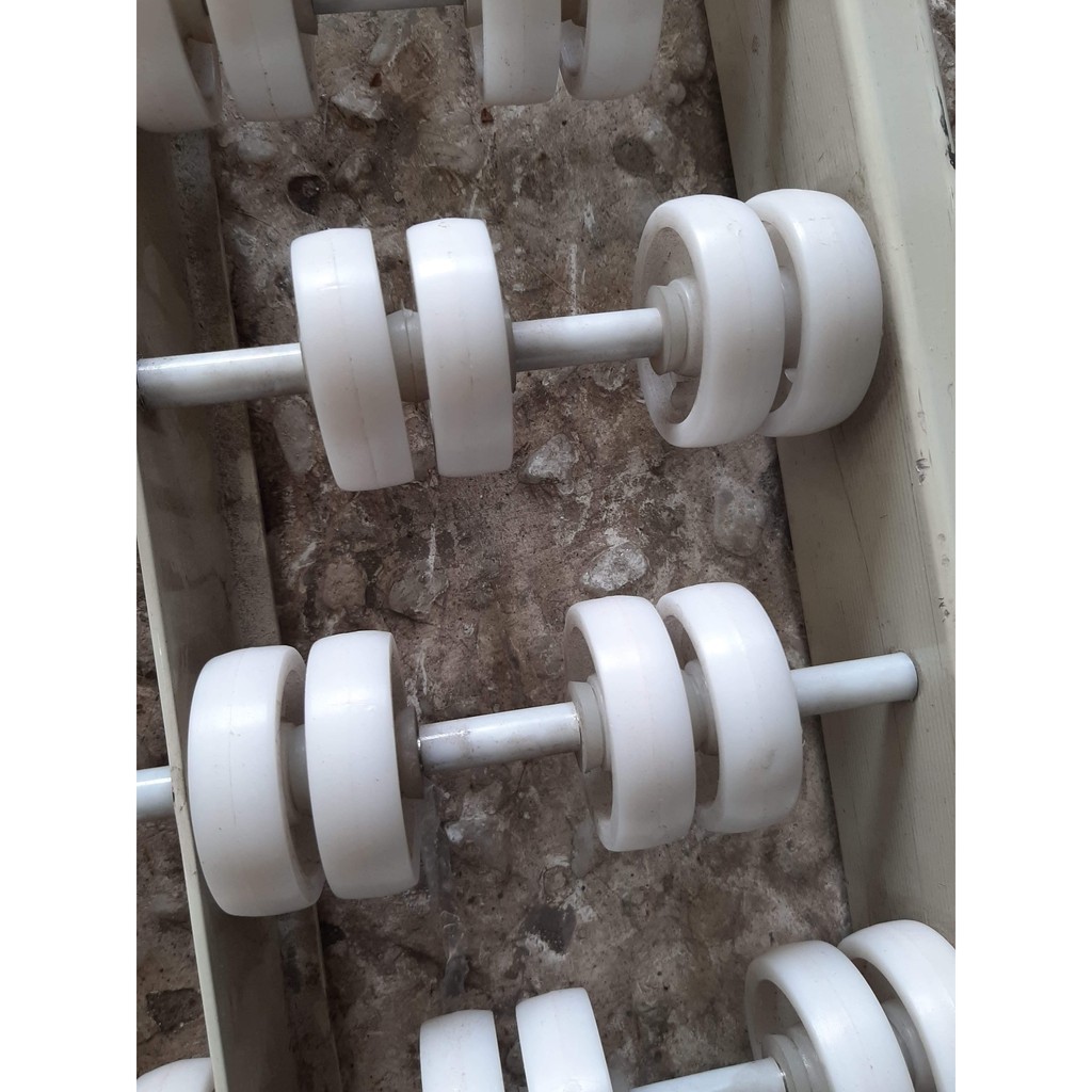 Bán sỉ Bánh xe nhựa chuyên dùng cho băng tải Sản phẩm bền chắc, nhựa chính phẩm Màu trắng sữa. Liên hệ để mua số lượng nhiều, giá ưu đãi. Chú ý: Sản phẩm 100% là nhựa chính phẩm, không phải nhựa tái chế. Màu sắc tươi sáng bóng.
