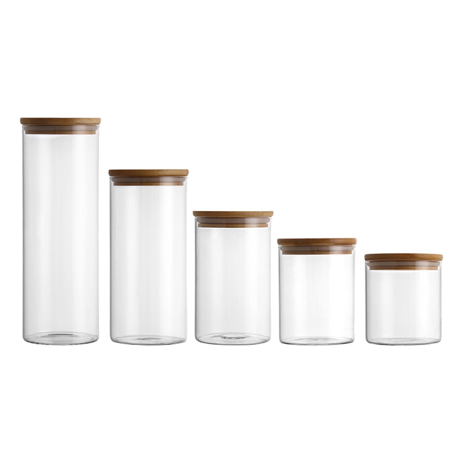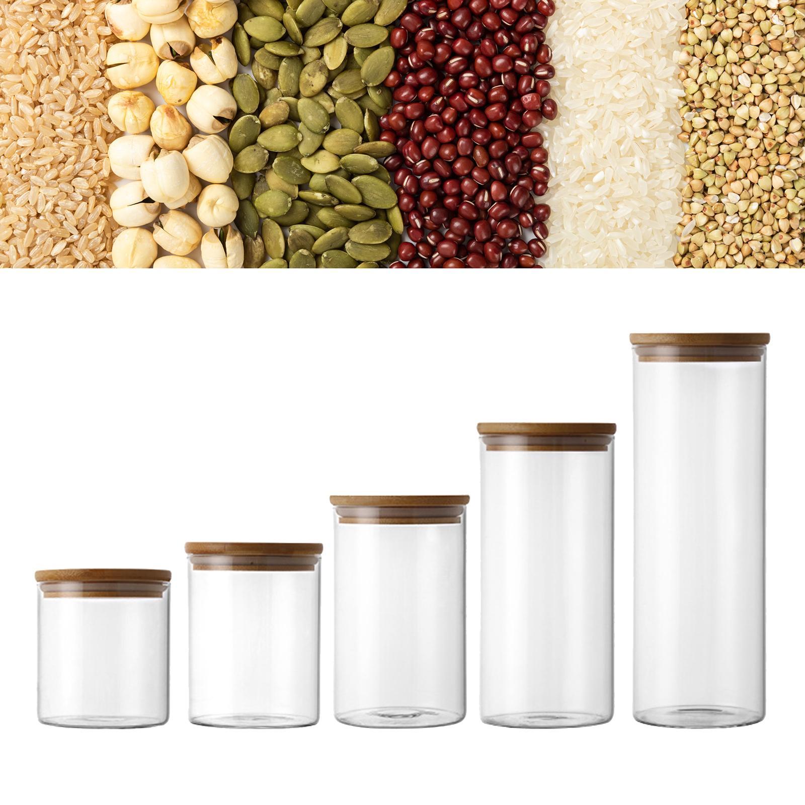 5x Food Storage Canisters Organizer Glass Storage Jar for Candy Spice Grains
