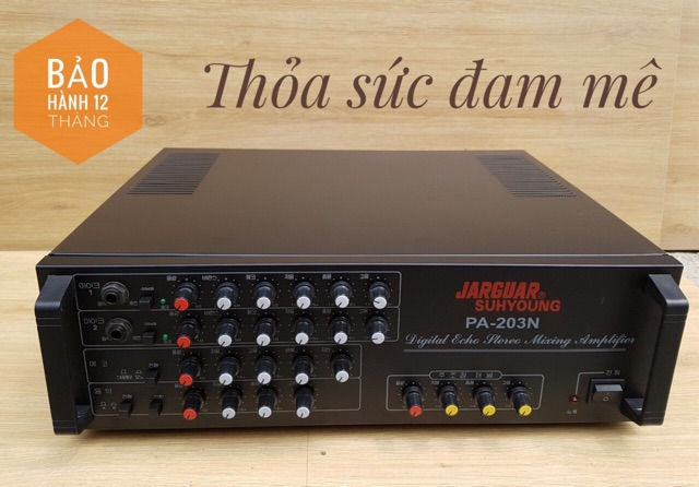1Thông số kỹ thuật của Amply Jarguar PA 203N Xuất xứ: Việt Nam Bảo hành: 14 tháng Số sò/loại 8 sò (AC) Điện áp: 220V/50Hz Trọng lượng: 10kg Đánh giá phiên bản đặc biệt Amply Jarguar Thiết kế sang trọng, đẳng cấp Các sản phẩm Amply Jarguar đều được với thiết kế hiện