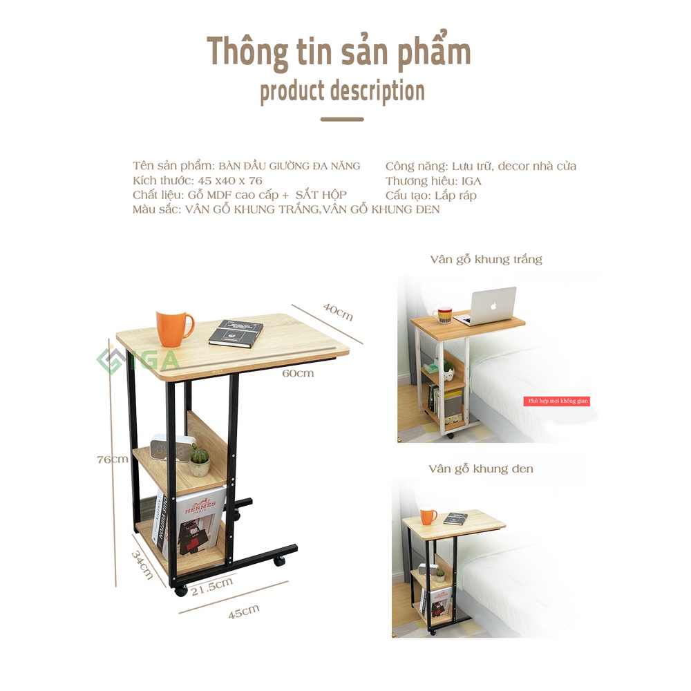 Bàn đầu giường bàn ăn có bánh xe kết hợp bàn học tiện lợi - gm22