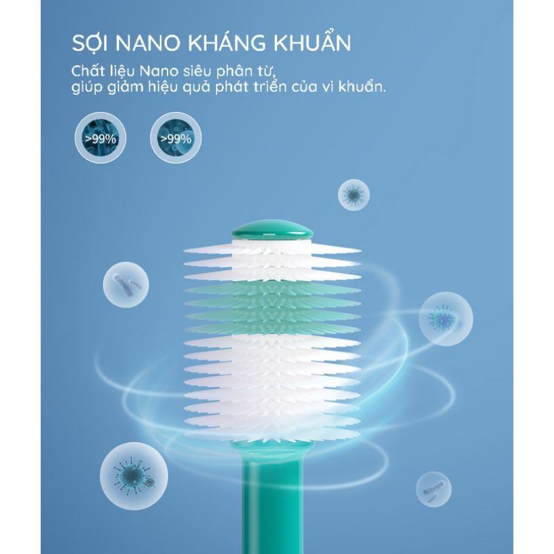 Bàn chải đánh răng 360 độ cho bé, với sợi nano kháng khuẩn, chải sạch răng hơn, bàn chải mềm mại phù hợp bé từ 1-3 tuổi