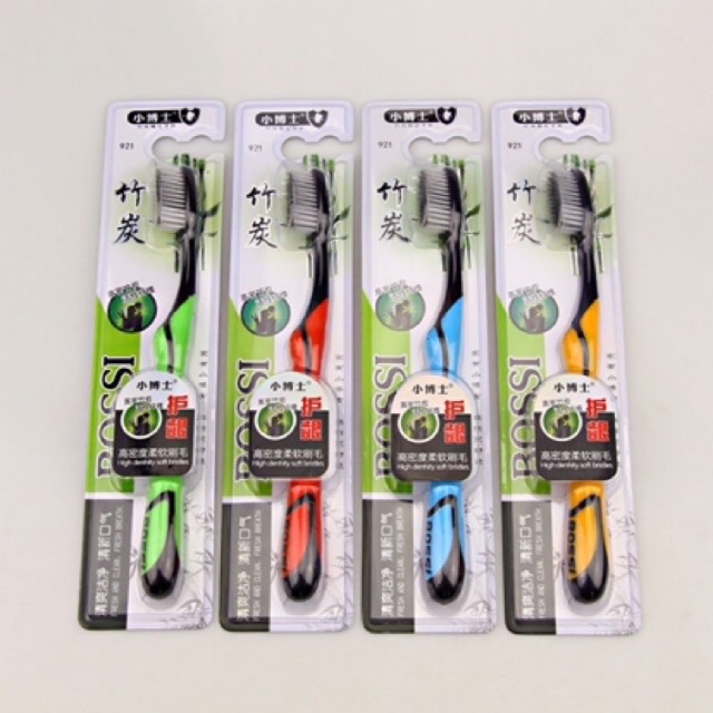Bàn Chải Đánh Răng Than Tre Hoạt Tính Hàn Quốc BOSSI ------------------------------------ Cấu trúc lông bàn trải hai tầng, sợi tròn và sợi chỉ tơ len lỏi vào từng kẽ răng giúp chải răng sạch hơn, massage nướu lợi và lợi giúp loại bỏ những mảng bám cứng đầu nhất. Bộ bàn chải đánh răng sợi nhỏ sử dụng công nghệ từ Hàn Quốc, với thành phần từ hạt carbon an toàn cho sức khỏe người sử dụng, lông mềm mịn an toàn, ko gây đau chảy máu chân răng. Dùng nguyên liệu thực vật để chế tạo lông bàn chải, nguyên liệu thực vật phân hủy trong vòng một năm rất thân thiện với môi trường. Dùng cho cả gia đình, tiện lợi sạch sẽ * Model : No 921 Thương hiệu : Bossi Hàn Quốc Xuất xứ : Hàn Quốc Gia công tại Nhà máy Shantou Youngjia Trung Quốc Chất liệu : Thân nhựa PP, lông bàn chải chất liệu than hoạt tính Kích thước dài : 19cm Kích thước mặt chải : 3 x 1.5cm Kích thước lông bàn chải dài : 1.2cm Màu sắc : Xanh lá, xnah biển, cam hoặc đỏ. Lông 2 sợi đen và trắng Nhiệt độ chịu tới 80oC #banchai#ban#danh#rang#ban#chai#home#