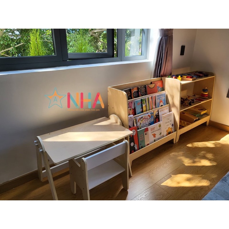 Bàn ghế montessori, bộ bàn ghế gỗ cho trẻ em 2 nấc chiều cao có thể xoay thành bảng từ tính, bảng vẽ cho bé