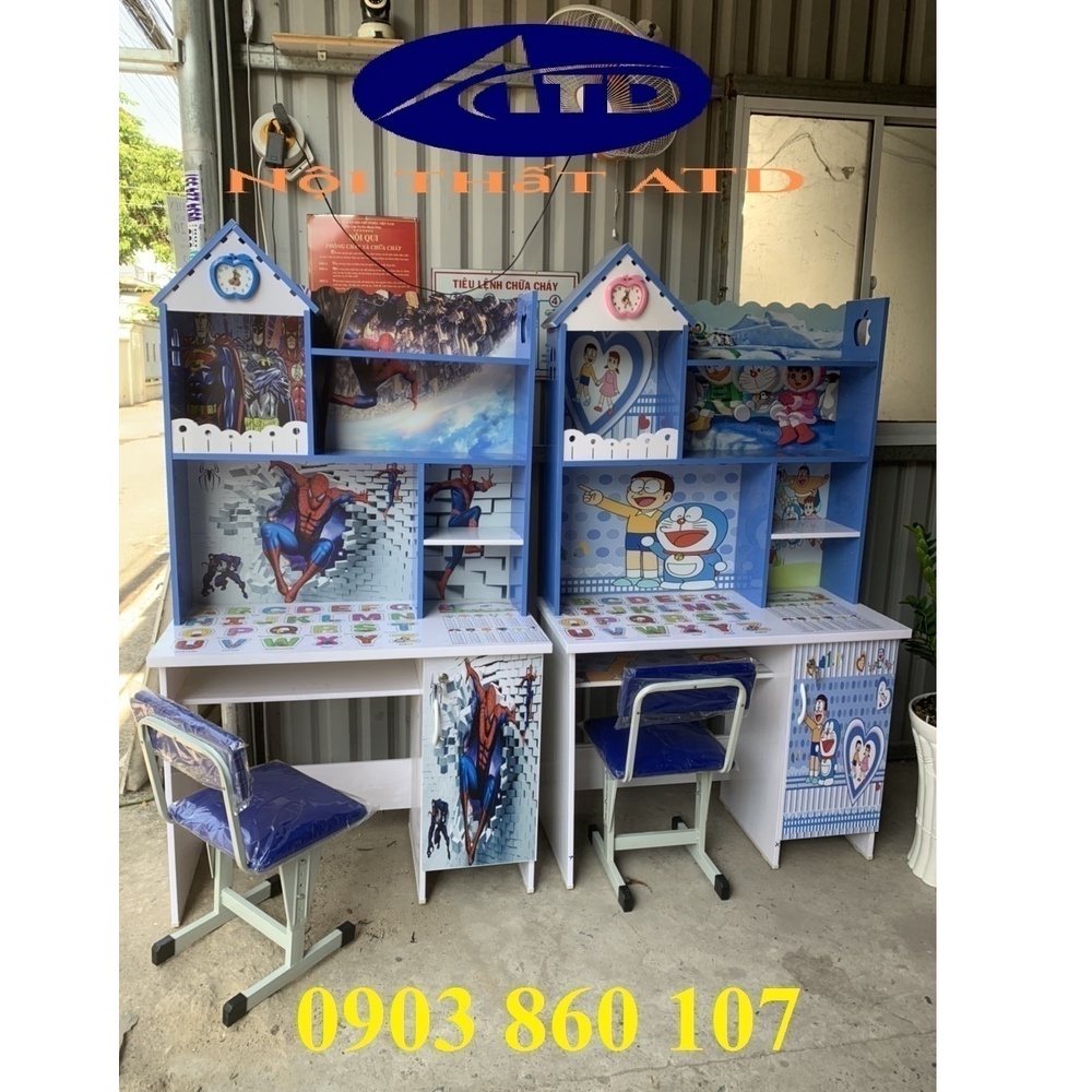 BÀN HỌC SINH NHỰA KÈM KỆ IN 3D CHO BÉ ĐẸP NHIỀU MẪU Y HÌNH Màu sắc : Kiity, công chúa, đoremon, kem gỗ...in 3D Chất liệu: Nhựa đài loan Kích thước: Ngang 80cm x cao 1m73 x sâu 45cm : 1200k Ngang 1m x cao 1m73 x sâu 45cm: 1300k Bàn học nhựa nhẹ gọn dễ di chuyển Bàn in