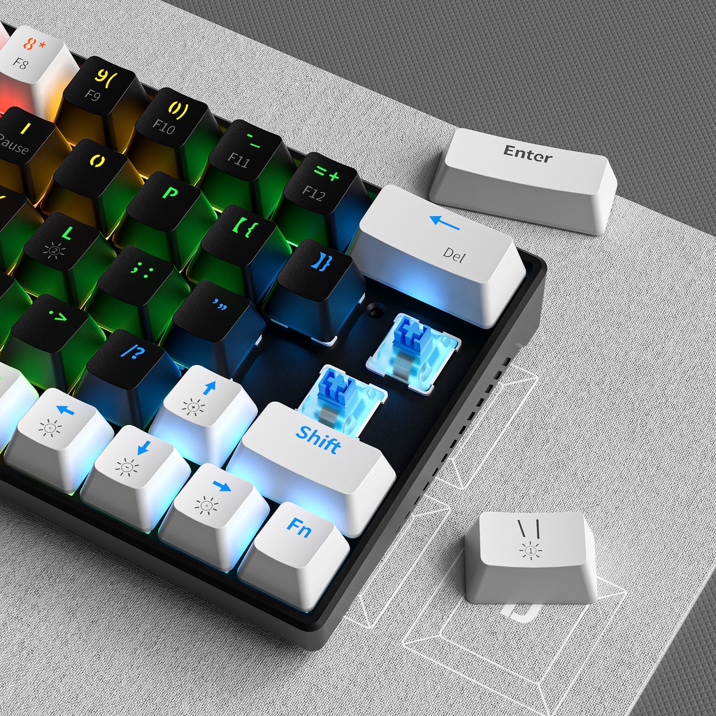 Bàn phím cơ KA-6406 60% Mini 61 phím led Rainbow HotSwap gọn nhẹ thích hợp chơi game, dùng văn phòng, led 12 chế độ sáng