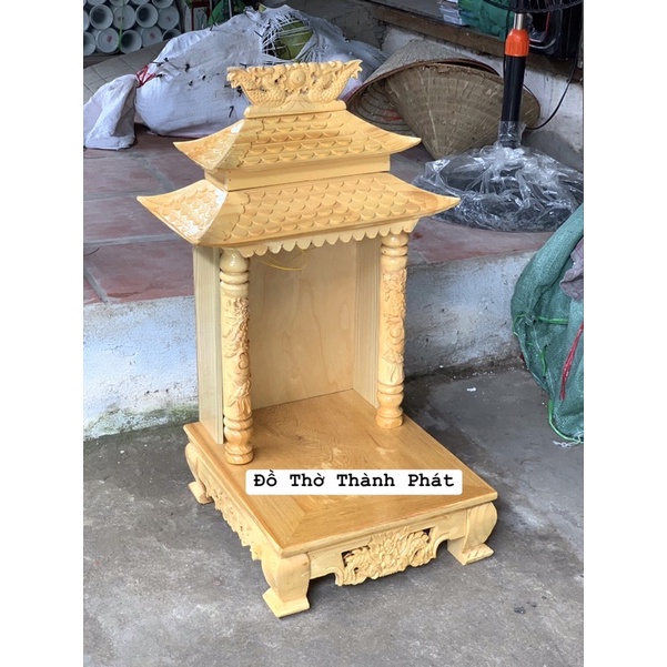 Bàn thờ Thần Tài Thổ Địa mái chùa Kích thước: - Ngang 36cm sâu 40cm cao 72cm( bao gồm cả mái) - Ngang 41cm sâu 46cm cao 78cm( bao gồm cả mái) - Ngang 48cm sâu 54cm cao 88cm( bao gồm cả mái) Chất liệu: Gỗ Pơ mu ❎ Lưu ý: Phần mái ban thờ( nóc ban thờ) rời ra với bàn th