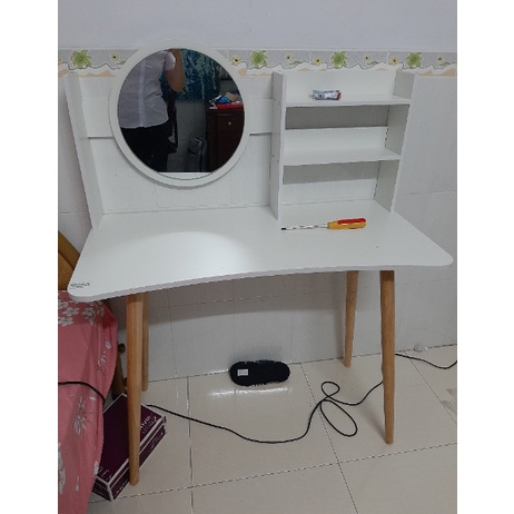 Bàn Trang Điểm Kèm Gương Phong Cách Bắc Âu - GP84(KHÔNG KÈM GHẾ) --------------- ☑️ CAM KẾT ✔️ Hàng thật như hình ✔️ Hàng chính hãng cao cấp, bền, đẹp ✔️ Không giống hoàn 111% giá trị đơn hàng ✔️ Giá cả: RẺ NHẤT với hàng cùng chất lượng! ✔️Thời gian chuẩn bị hàng: hàng luôn có, luôn sẵn sàng mang qua bưu cục khi có đơn của bạn. --------------- *** CHƯƠNG TRÌNH ƯU ĐÃI Hiện Shop đang triển khai nhiều ưu đãi hấp dẫn, hãy nhấp vào xem Shop để lấy mã ưu đãi bạn nhé. --------------- *** QUYỀN LỢI CỦA BẠN: ✔️Bao đổi trả hàng miễn phí khi sản phẩm không giống hình, hoặc nhầm size, số lượng... ✔️Khách cũ: luôn có mã giảm giá ưu tiên cho khách cũ nhé. --------------- ☑️ THÔNG TIN SẢN PHẨM ́́́- Kích thước bàn: Dài 100cm, Rộng 50cm, Cao 118cm. - Chất liệu: Gỗ MDF phủ melamin chống xước chống nước dễ dàng vệ sinh. - Phong cách: Bắc Âu - Công năng: Bàn trang điểm bàn làm việc. Thích hợp mọi không gian tại nhà tại spa salon shop - Cấu tạo: Lắp ráp 🆘 LƯU Ý🆘 - Nếu bạn nhận hàng chất lượng kém không giống mô tả shop hoàn tiền ngay 100% cho bạn. - Nếu sản phẩm bị lỗi do vận chuyển shop đổi sản phẩm mới miễn phí cho bạn. #bantrangdiem #bantrangdiemcoguonng #banphan #banlamvie#freeship #revodich #hangchinhhang #extraship #flashsa