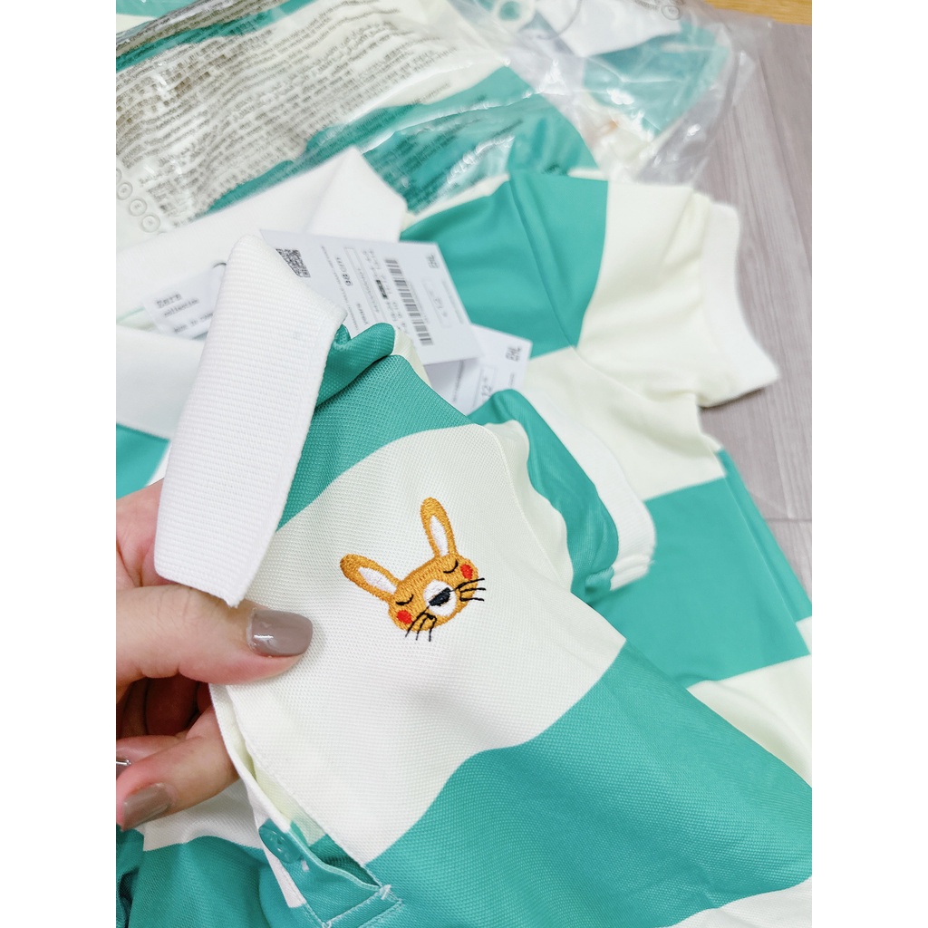 ✨BÁN SỈ✨Đầm polo VNXK trẻ em kẻ ngang xanh hoạ tiết thêu