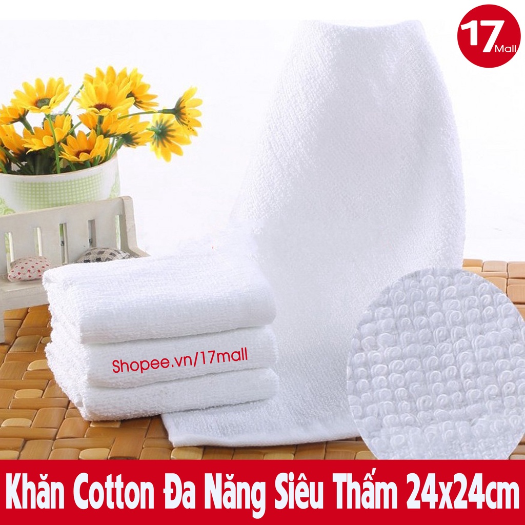 BÁN SỈ 500 Khăn lau đa năng siêu thấm, khăn cotton lau tay, lau xe, nhà bếp, quán ăn vuông 24x24cm trắng 17Mall