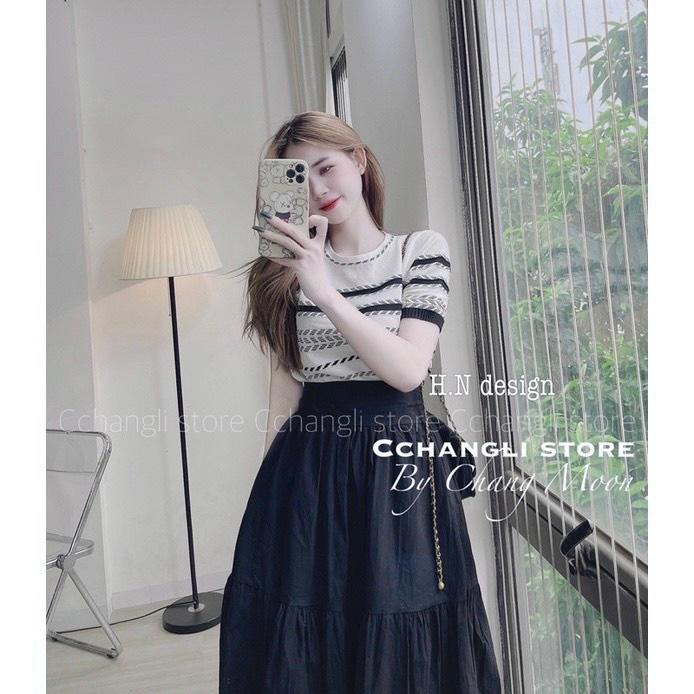 ✨BÁN SỈ✨TÁCH SET LEN KẺ NGANG QUẢNG CHÂU KÈM CHÂN VÁY ĐEN