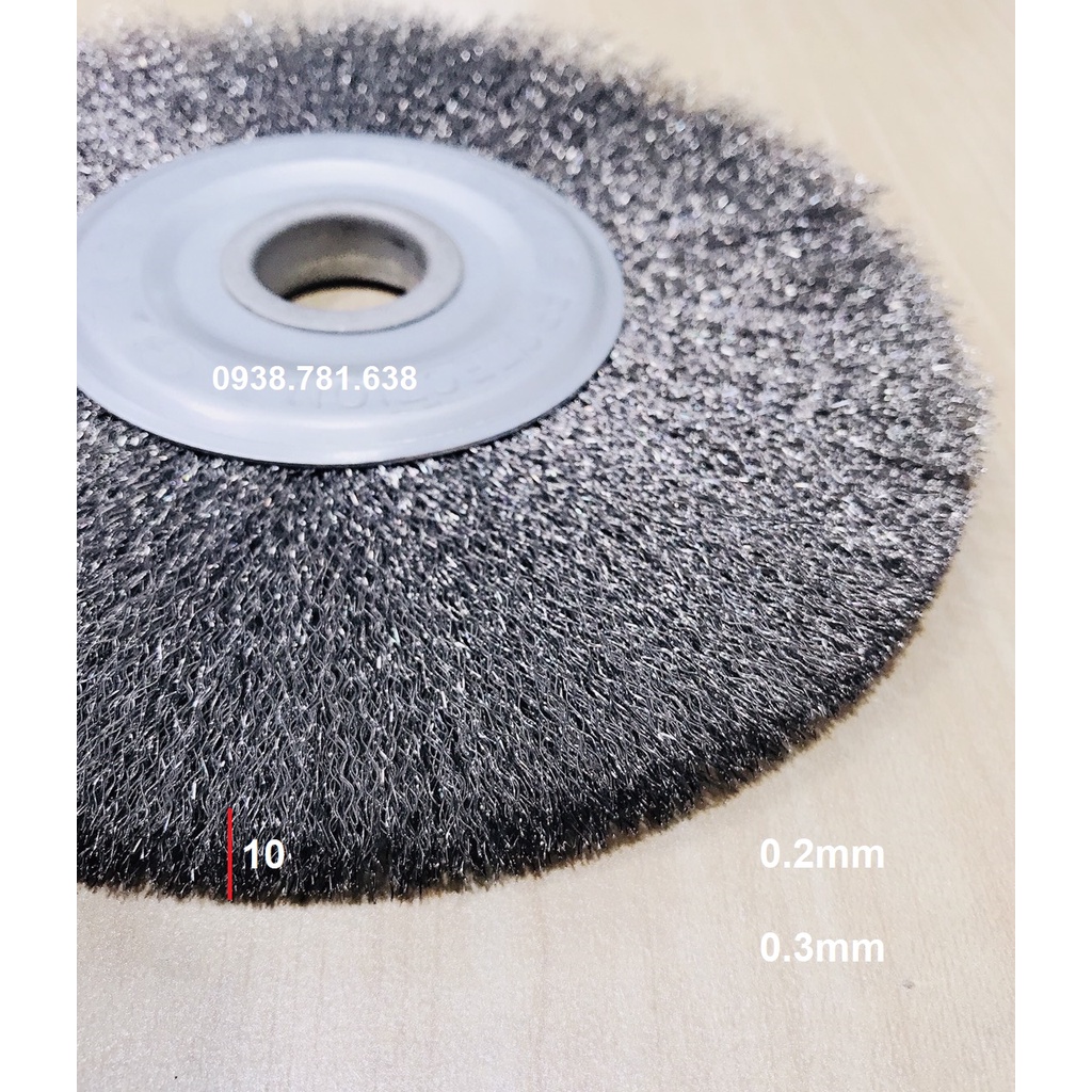 Bánh inox 200x10x25.4(0.2-0.35) *Mô tả sản phẩm : + Đường kính : 200mm + Độ dày : 10mm + Lỗ : 25.4 ( Có lỗ 25.4 xuống 22 hoặc 22 xuống 16mm - Tùy theo khách yêu cầu ) + Sợi cước : 0.2 - 0.35mm ❎Ứng dụng trong nghành đánh bóng ,sợi cước bằng thép mạ vàng ,bánh cước