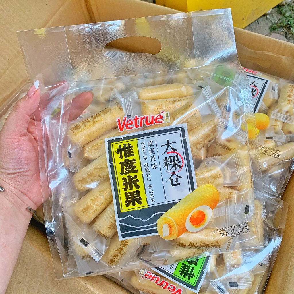 Huyền thoại BÁNH GẠO CUỘN VETRUE ĐÀI LOAN ai nghiền thì khó bỏ lắm nè Là bánh gạo nhưng vỏ bên ngoài xốp xốp cắn thì giòn nhưng tan nhanh trong miệng , còn nhân bánh là trứng muối quyện cùng sữa béo thơm ngon . Bánh là sự kết hợp hài hòa của vị ngọt dịu từ vỏ bánh ,