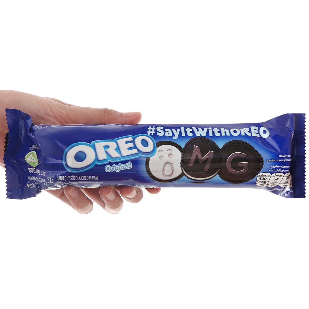 Bánh quy nhân kem Oreo là sản phẩm cao cấp được nhập khẩu từ Thái Lan, có hương vị thơm ngon hấp dẫn với sự hòa quyện của lớp vỏ sô cô la bên ngoài, nhân vani bên trong. Sản phẩm không chỉ được trẻ nhỏ mà người lớn cũng rất ưa chuộng. - Bánh với lớp nhân kem ngọt má