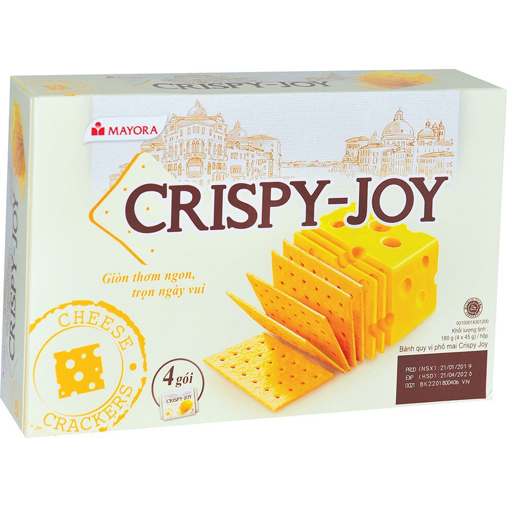 Bánh quy vị phô mai Crispy Joy hộp 360g BÁNH QUY VỊ PHÔ MAI CRISPY JOY nhập khẩu 100%, mang đến cảm giác giòn tan,thơm ngon khó cưỡng với hương vị phô mai Cheddar hảo hạng; cung cấp cho bạn nguồn dinh dưỡng và năng lượng dồi dào. ❤ Mỗi hộp bánh 360g có 8 gói bánh n