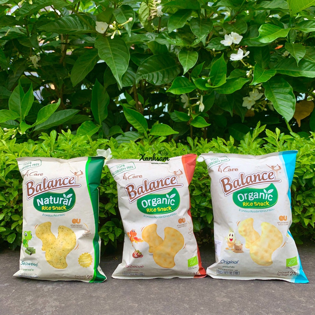 Bánh Snack Gạo Hữu Cơ Vị RONG BIỂN, BBQ, TRUYỀN THỐNG 4Care Balance - XanhSam Organic Bạn đang tìm một món ăn vặt vừa không quá nhiều calo, không nhiều muối lại an toàn cho sức khỏe? Snack hữu cơ được làm từ gạo hữu cơ đến từ Thái Lan sẽ là lựa chọn tốt dành cho bạn. Sản phẩm được làm từ gạo Jasmine hữu cơ và các gia vị cân bằng để mang lại cảm giác ngon, lạ miệng an toàn cho sức khỏe Snack được làm từ các thành phần tự nhiên đã được chứng nhận Châu Âu: 👌Không bột ngọt 👌Không phẩm màu Bánh Snack gạo hữu cơ 4 Care Balance được làm từ gạo Jasmine hữu cơ và thêm các gia vị cân bằng để mang lại cảm giác ngon miệng, nhưng vẫn an toàn cho sức khỏe. 👉 Bánh có 3 vị: BBQ, truyền thống, rong biển 👌Không hương liệu 👌Không chất điều vị 👌Sử dụng nướng thay vì chiên. Do đó so với các sản phẩm Snack thông thường và thực phẩm ăn nhẹ nói chung thì hàm lượng chất béo ít hơn. Ngoài ra Snack gạo hữu cơ không có 8 chất gây dị ứng hàng đầu, cả những người bị dị ứng thực phẩm cũng có thể ăn. Snack hữu cơ hiện có 2 vị là Snack vị truyền thống và Snack vị BBQ đã được chứng nhận Châu Âu - EU. Ngoài ra, còn có sản phẩm Snack vị tảo biển 100% thành phần thiên nhiên, có thể mang lại cảm giác lạ miệng cho người sử dụng. Thành phần: Gạo thơm hữu cơ Jasmine 52%, Dầu hướng dương hữu cơ 15%, vị truyền thống hữu cơ 15%, tinh bột sắn hữu cơ 11%, đường hữu cơ, muối, chất chống oxi hóa ( d-alpha- tocopherol ) từ thực vật. Đặc điểm: Không thêm chất bảo quản, không bột ngọt, phẩm màu và chất điều vị. Bảo quản: Nơi khô ráo, thoáng mát, tránh ánh nắng trực tiếp và nơi có nhiệt độ cao. Lưu ý : Không sử dụng sản phẩm khi có mùi vị lạ. Hướng dẫn sử dụng: Sản phẩm dùng trực tiếp. Khối lượng tịnh: 25gr/gói. Xuất xứ: Thái Lan =========================== 💚 XANHSAM NATURAL & ORGANIC 💚 Sống xanh • Ăn sạch • Lòng thư thái 🏡 • 51 Nguyên Hồng - Đống Đa 0793 233 338 • SO08 A2 - Vinhomes Gardenia - Hàm Nghi 0798 233 338