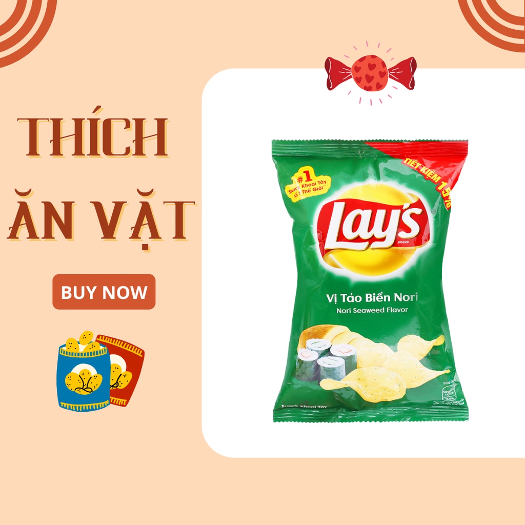 – Lay’s là thương hiệu quốc tế, dùng chung cho tất cả sản phẩm Snack khoai tây trên thế giới. - Khối lượng: 30g/ gói - Nhiều vị, nhiều mùi đa dạng - HSD: 6 tháng kể từ ngày sản xuất