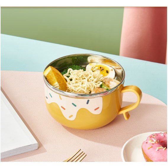 Bát úp mì 2 lớp lõi inox giữ nhiệt chống nóng, bát mì NẮP NHẪN nhiều màu