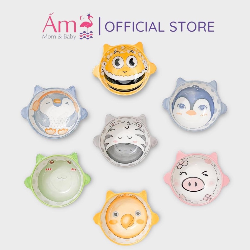 Bát Ăn Dặm Cho Bé Bằng Sứ Hình Thú Có 4 Quai Ấm Baby Dung Tích 120 - 150ml Ấm Gift Decor