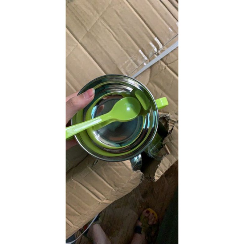 Thông tin sản phẩm: + Chất liệu: Nhựa, PP, Inox Đặc điểm kỹ thuật: + Số lượng: 1 bát, 1 nắp, 1 muỗng + Muỗng được làm bằng thép không gỉ chất lượng cao + Bền và dễ sử dụng + Đã được làm sạch siêu âm nhiệt độ cao + Bề mặt sáng sủa và sạch sẽ trông thanh lịch + Dễ dàng vệ sinh, rửa chén an toàn