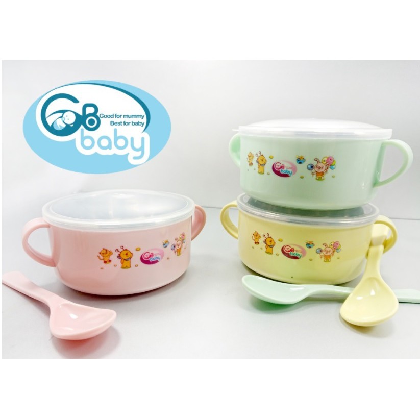 Bát ăn inox giữ nhiệt kèm thìa nhựa có nắp đậy ăn dặm cho bé GB BABY- 8818