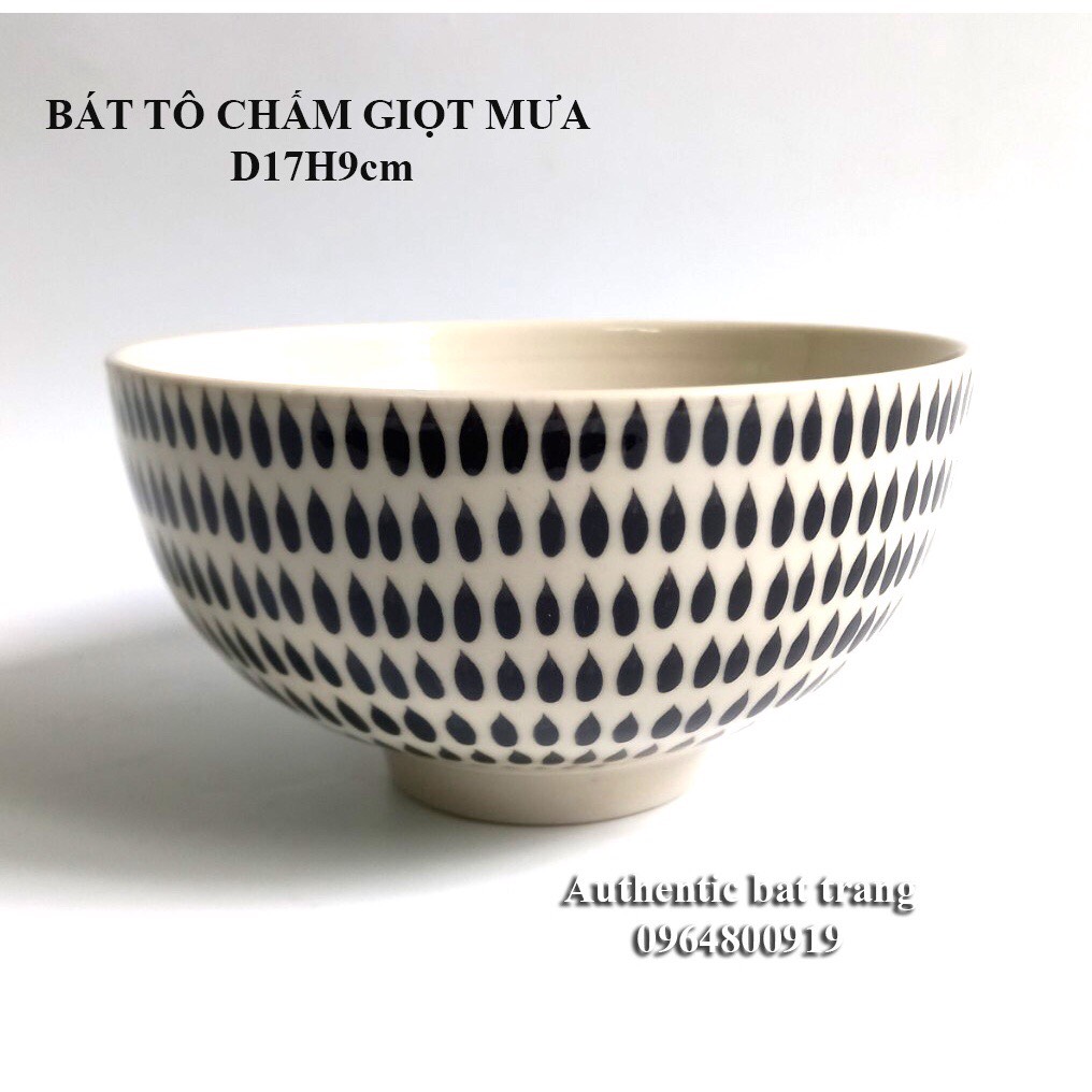 Bát tô sứ ăn phở vẽ tay thủ công - Tô 17H9cm + Dĩa D18cm + chén Sốt D8 + đĩa chanh ớt d9cm Authentic bat trang
