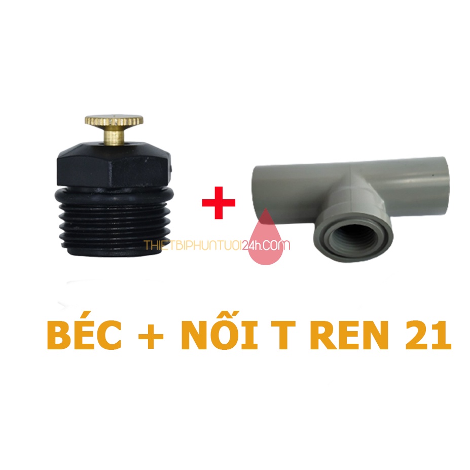 Béc phun mưa phun sương tưới tròn 360 đầu béc chỉnh được tia nước tầm phun rộng kèm nối T PVC ren 21 - MHL