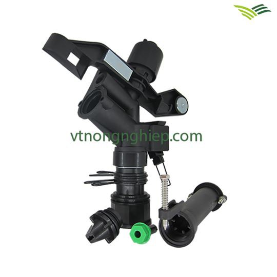 Béc tưới phun mưa chỉnh góc lớn, kiểu Đài Loan. Bán kính tưới: 20-25m. Áp lực tưới : 3 – 6 bar. Lưu lượng nước: 7-15 m³/h. Góc tưới: 360˚. Góc lệch quỹ đạo: 30˚. Đầu nối ren trong: 49mm, 42mm. Các cỡ họng thay thế: 10mm, 12mm, 14mm, 16mm. Màu sắc: Đen.