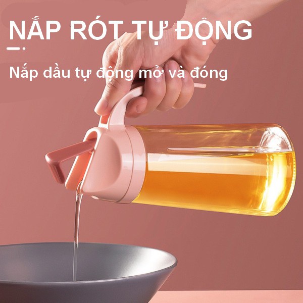 Bình đựng dầu ăn, nước mắm 600ml bằng thủy tinh nắp tự động đóng mở - Peehomedecor