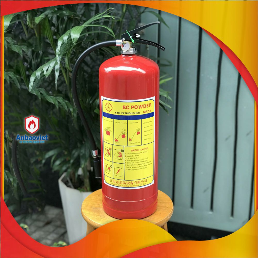 Tên sản phẩm: BÌNH CHỮA CHÁY BỘT ABC 8KG Model: MFZL8 Xuất xứ: Trung Quốc SẢN PHẨM NHẬP KHẨU CHÍNH HÃNG, CÓ ĐẦY ĐỦ GIẤY CHỨNG NHẬN CO -CQ, ĐẢM BẢO TIÊU CHUẨN PCCC CAM KẾT HÀNG MỚI 100%, NGUYÊN ĐAI NGUYÊN KIỆN, BẢO HÀNH CHÍNH HÃNG Sản phẩm bình chữa cháy bột được Công ty PCCC An Bảo Việt nhập khẩu chính hãng, có đầy đủ giấy chứng nhận CO, CQ, và tem bảo hành 12 tháng do shop cung cấp! Sản phẩm chỉ sử dụng cho 01 lần trong trường hợp chữa cháy, nên không được xịt thử! Quý khách hàng muốn kiểm tra tình trạng bình như thế nào phải kiểm tra bằng đồng hồ áp suất, nếu kim đồng hồ chỉ vạch màu xanh (hoặc vàng) là bình đang hoạt động tốt! THÔNG SỐ KỸ THUẬT: Mã sản phẩm: MFZL8 Chủng loại: Bình xách tay trung bình Chất chữa cháy: Bột chữa cháy ABC Sức chứa(kg): 8±0.09 Hiệu quả phun(s): ≥11.5 Phạm vi phun(m) ≥4.8 Nhiệt độ hoạt động(°C): 20~55 Chiều cao toàn bình: 54.9±2.2cm Trọng lượng bột: 8±0.3kg Tổng trọng lượng: 10.1±0.7kg Đường kính thân bình: 16.3±0.8cm Quy cách đóng gói: 2 bình/thùng Tình trạng: Hàng mới 100% CẤU TẠO CỦA BÌNH CHỮA CHÁY BỘT: Vỏ bình được đúc bằng thép không rỉ, thân bình có dạng hình trụ, thường được sơn màu đỏ để dễ nhận dạng. Chất chữa cháy bên trong bình là bột khô, dạng BC hoặc ABC. Khí đẩy được nén trực tiếp trong bình và được đọc thông qua đồng hồ áp lực. Phía trên miệng bình gắn một cụm van xả cùng với khoá van và đồng hồ đo áp lực. Vòi và loa phun gắn liền với cụm van xả có thể tháo rời, thay thế dễ dàng. HƯỚNG DẪN SỬ DỤNG: 1. Mang bình đến gần đám cháy, người sử dụng bình chữa cháy phải đứng thuận chiều gió 2. Rút chốt an toàn (chốt niêm phong trên bình) 3. Bóp mạnh van xả cho bột chữa cháy phun bao trùm lên ngọn lửa 4. Rà qua rà lại cho đến khi lửa tắt hoàn toàn LƯU Ý: KHÔNG XỊT THỬ, CHỈ KIỂM TRA BẰNG ĐỒNG HỒ ÁP SUẤT! CÔNG DỤNG: Bình bột chữa cháy ABC 8kg: thường được dùng cho văn phòng công ty, nhà xướng, kho bãi, quán ăn, nhà hàng, khách sạn, spa, shop thời trang..... Ưu điểm của bình là nhỏ gọn,dễ dàng sử dụng. Bạn có thể nhanh chóng dập tắt đám cháy nhỏ mới phát sinh tránh được nguy cơ hỏa hoạn cho nơi bạn đang sinh sống hoặc làm việc. Bột chữa cháy dập tắt nhanh các đám cháy có nguyên nhân từ: CHẤT RẮN, CHẤT LỎNG, CHẤT KHÍ Bột chữa cháy không độc, vô hại với người, gia súc và môi trường, có thể tái nạp sau mỗi lần sử dụng.