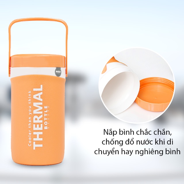Bình giữ nhiệt 1 lít Duy Tân Matsu Dung tích: 1 lít Kích thước: phi Ø105 x 210 mm Bình giữ nhiệt nước đá lạnh hoặc nóng Giữ nóng hoặc lạnh từ 4->6giờ , Bình thiết kế mẫu đẹp & sắc xảo, Có nắp vặn kín giữ nhiệt , quai xách chắc chắn, Chịu nhiệt nóng từ 20°C đến 80°C
