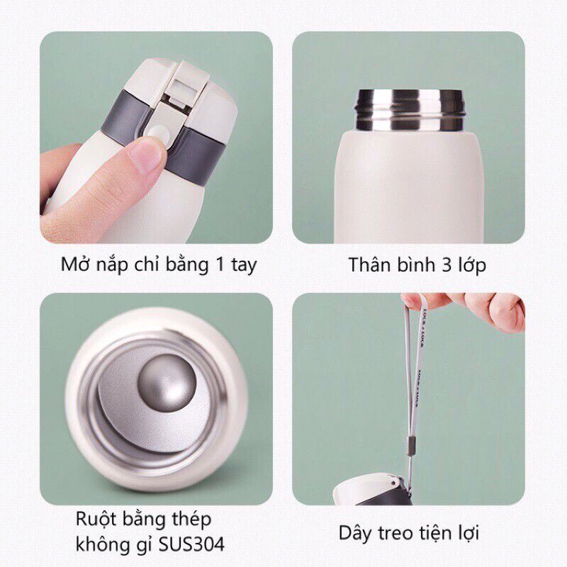 Bình giữ nhiệt Lock&lock LHC3233 có dây treo, quai xách, nút ấn 370ml nhỏ gọn