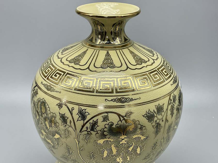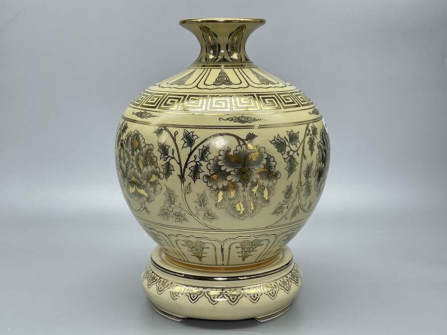- Xuất xứ : Gốm Chu Đậu- Kích thước : Cao 35cm ngang 32cm (Cao cả đế 45cm)- Chất liệu : Gốm men rạn vẽ vàng...