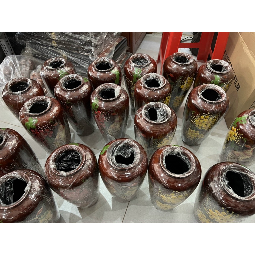 Bình hoa gỗ lớn vẽ cành hoa mai đào mỹ nghệ cao cấp - Cao 30cm