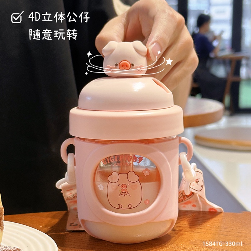 Bình Nước 330ml Nhỏ Gọn Kèm Ống Hút Họa Tiết Hoạt Hình Dễ Thương