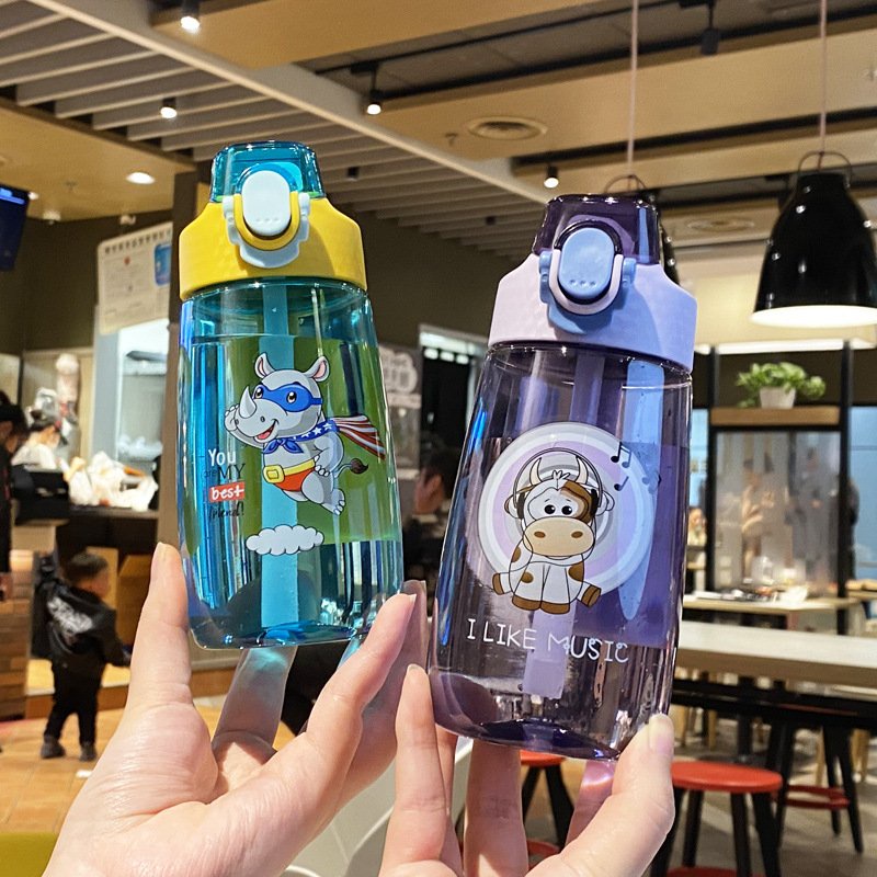 Bình nước cho bé, bình nước học sinh 480ml nhựa PP,PC in hình kute dây xách silicon cao cấp Bunakids BN01