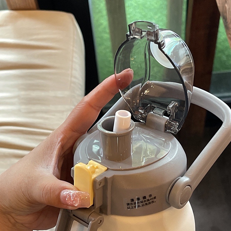 Bình Nước Giữ Nhiệt Dung Tích Lớn 1300/1700ml Bằng Thép Không Gỉ Kèm Ống Hút Phong Cách Thể Thao
