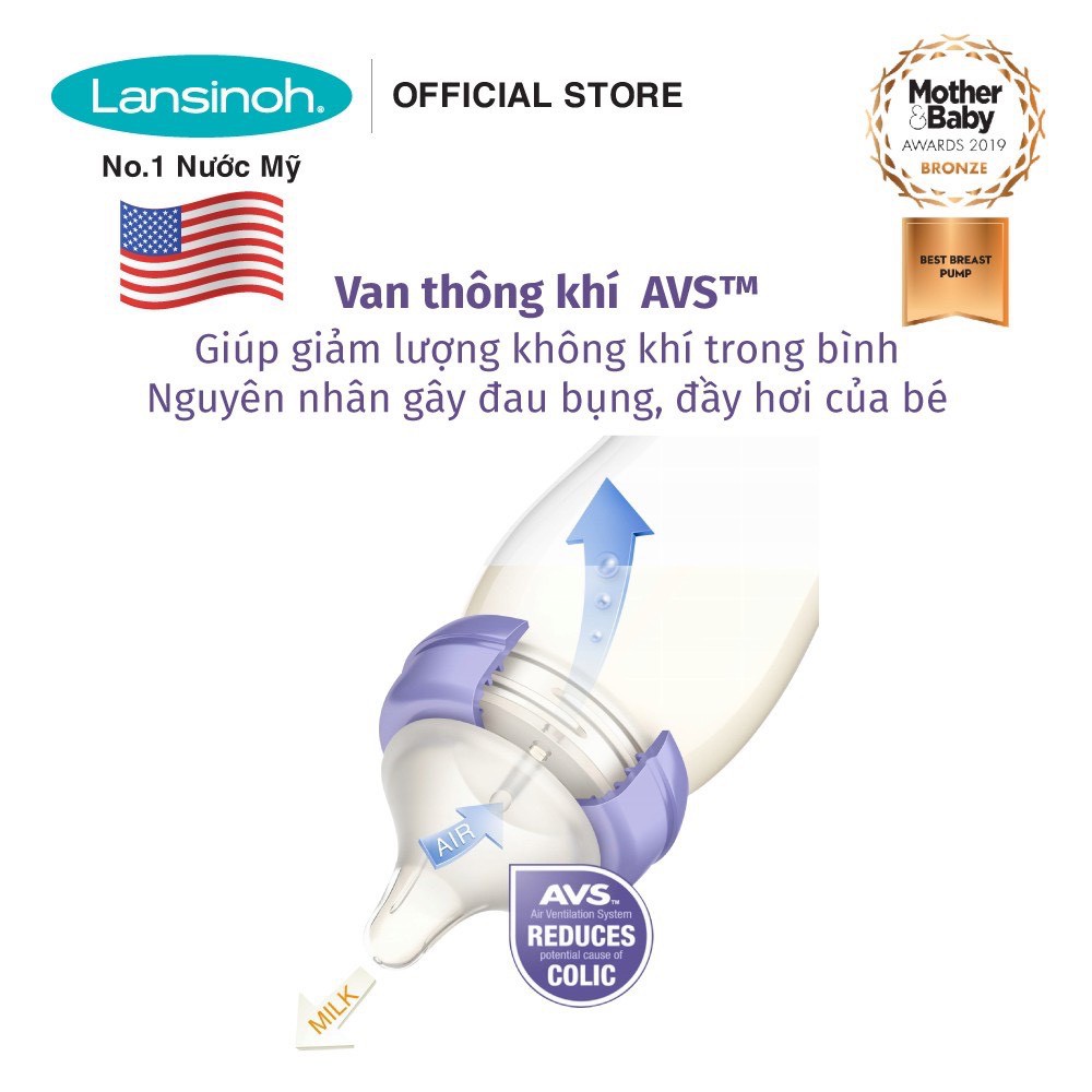 Đặc điểm nổi bật - Núm ti được làm bằng 100% silicon an toàn cho bé, giúp tạo cảm giác mềm mại, linh hoạt uốn theo khuôn miệng của bé và có độ bền cao. - Có thiết kế hệ thống lỗ thông khí (AVS) giúp giảm lượng khí bé nuốt vào khi bú, giúp giảm nguyên nhân gây tức bụng, đau bụng hoặc trào ngược cho bé. - Cấu tạo đơn giản, dễ dàng lắp ráp và làm sạch nhanh chóng - Thành bình cong mềm mại giúp bé dễ cầm nắm - Không chứa BPA, an toàn theo tiêu chuẩn Mỹ - EU. - Bình 160ml đi kèm núm Lansinoh size S (0-3m+) - Bình 240ml đi kèm núm Lansinoh size M (3-6m+) Thông tin sản phẩm - Thành phần: Thân bình, nắp vặn, nắp đậy: nhựa polypropylene (nhựa PP). Núm vú: 100% silicone. - Thông tin cảnh báo an toàn: Không cho trẻ bú bình khi không có sự giám sát của người lớn. Kiểm tra kĩ trước và sau khi sử dụng. Loại bỏ ngay nếu núm vú bị rách, thủng hoặc hư hỏng do bé cắn. Không cho trẻ ngậm vú dùng với bình sữa như núm vú giả - Hướng dẫn bảo quản: Bảo quản sản phẩm nơi khô ráo, thoáng mát. - Quy cách đóng gói: 1 bình/hộp - Dung tích bình:160ml/ 240ml - HDSD: Bình sử dụng núm vú nhu động siêu mềm. Luôn rửa sạch và tiệt trùng bình sữa trước khi cho bé bú. Rửa bằng dung dịch rửa bình sữa và núm vú, tiệt trùng bằng nước sôi, lò vi sóng hoặc máy tiệt trùng. - Xuất xứ: Thổ Nhĩ Kỳ - HSD: 5 năm