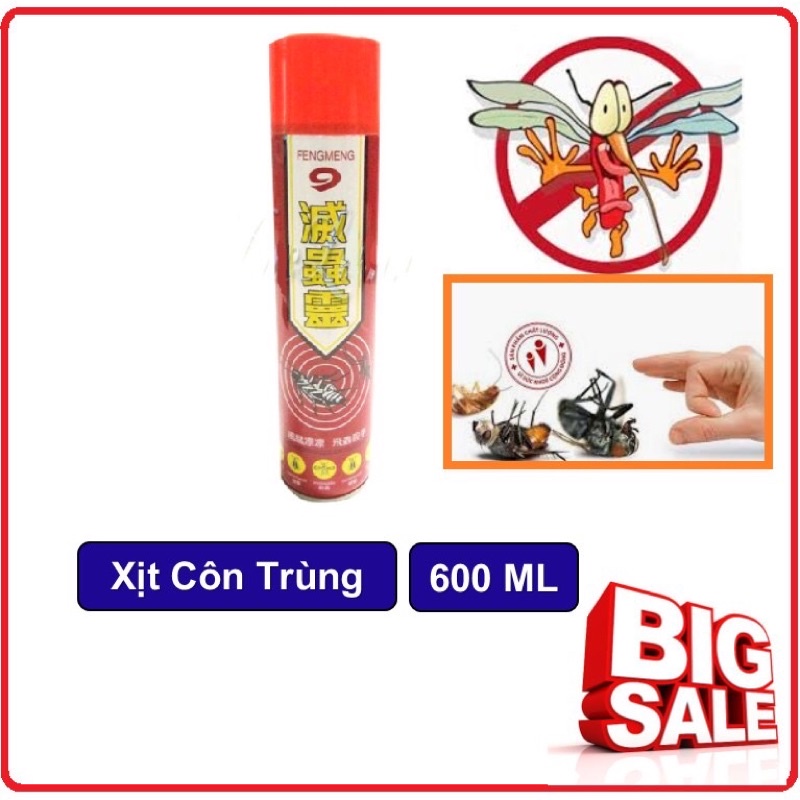 Bình xịt muỗi diệt côn trùng số 9 Xuất Xứ: Trung Quốc Dung tích: 600ml Thành phần và công dụng: Bình xịt côn trùng số 9 600ml có tác dụng tiêu diệt côn trùng nhanh chóng và hiệu quả tức thì giúp bạn gạt bỏ mọi nỗi lo về các chứng bệnh do côn trùng gây ra như: sốt xuấ