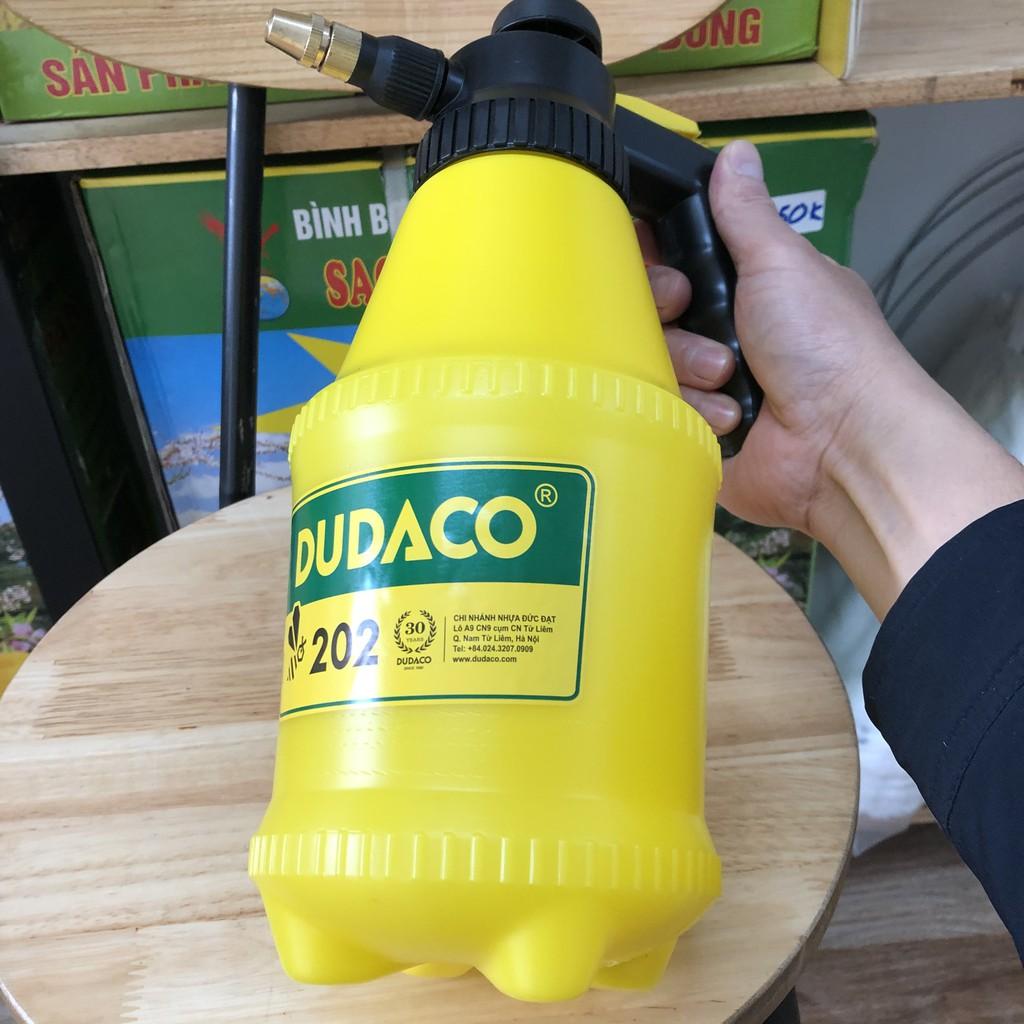 BÌNH XỊT TƯỚI CÂY PHUN SƯƠNG 2L ĐỨC ĐẠT - Mô tả: Bình DUDACO 2 lít loại không đế, béc đồng, dùng được với các loại hóa chất, nông dược thông thường. - LƯU Ý: Thực tế lượng chất lỏng tối đa chứa là 1.5L nhưng do tên công ty ngày trước gọi là bình 2 L Nhiều chế độ tưới: phun tia, phun sương. - Đặc tính sản phẩm - Loại bình cầm tay nhỏ gọn, dùng để chăm sóc hoa kiểng hoặc phun hoá chất các loại với lượng nhỏ - Béc phun bằng đồng - Ty bơm bằng sắt, xi mạ cao cấp không rỉ sét - Ron phốt cao su không bị ảnh hưởng bởi hoá chất - Lò xo bằng thép cứng độ dàn hồi cao - Vỏ bình bền chắc sử dụng được trong nhiều năm Chính sách đổi trả: Khách hàng đổi trả khi về dùng có lỗi do nhà sản xuất. Shop Sơn An chuyên bán vật tư nông nghiệp trên toàn quốc Giá sản phẩm trên Tiki đã bao gồm thuế theo luật hiện hành. Bên cạnh đó, tuỳ vào loại sản phẩm, hình thức và địa chỉ giao hàng mà có thể phát sinh thêm chi phí khác như phí vận chuyển, phụ phí hàng cồng kềnh, thuế nhập khẩu (đối với đơn hàng giao từ nước ngoài có giá trị trên 1 triệu đồng).....Sản phẩm này là tài sản cá nhân được bán bởi Nhà Bán Hàng Cá Nhân và không thuộc đối tượng phải chịu thuế GTGT. Do đó hoá đơn VAT không được cung cấp trong trường hợp này.